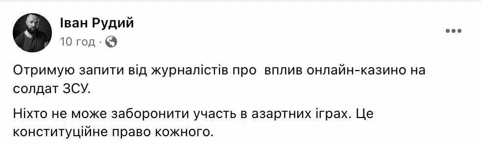 У відповідь на занепокоєння впливом онлайн-гемблінгу на військових, Антон Кучухідзе та Іван Рудий наголошують на нагальній потребі рішучих дій проти нелегального ринку. Адже саме він, через свою неконтрольованість, створює найбільші ризики для суспільства.