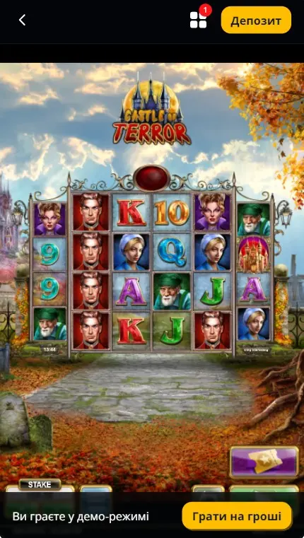 Крутить slot Castle of Terror можно не только на компьютере, но и на мобильном устройстве – смартфоне или планшете. Игровой автомат оптимизирован для небольших экранов, однако похоже, что не всех. На дисплеях ряда моделей телефонов часть интерфейса игры уходит под нижнюю грань, а это почти вся панель инструментов управления. Приходится поворачивать мобильное устройство горизонтально. Тогда кнопки запуска игры, настроек и выбора размера ставок смещаются в правую часть экрана, но в этом случае часть изображения также остается скрытой.