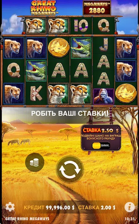 Было бы бессмысленно разбирать слот, если бы не было шанса насладиться им. Возможность сыграть в Great Rhino Megaways бесплатно в демо режиме или на реальные деньги предоставляют многие казино Украины. Все они имеют лицензию КРАИЛ, а также устоявшуюся репутацию.